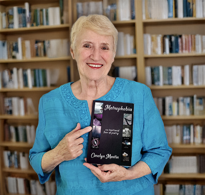 Metrophobia is a laugh-out-loud, deeply relatable collection from award-winning poet Carolyn Martin. Whether she’s blessing a feral cat, reporting live from the Sermon on the Mount, or riffing on AI and aging, Martin busts the myth that poetry is just for scholars or romantics with quills.